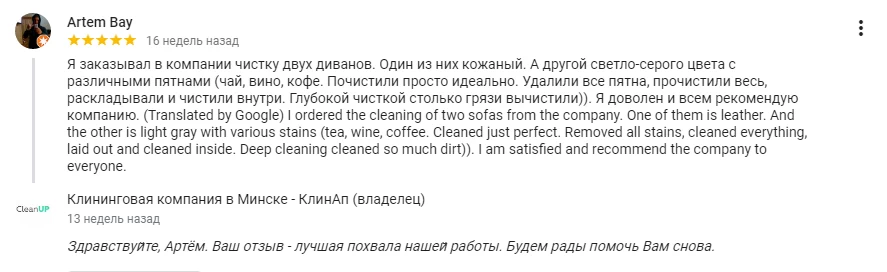 Компания Clean Up предлагает заказать химчистку мебели на дому в Минске на выгодных условиях. Обученный персонал способен выполнить ряд работ оперативно и качественно. В арсенале клинеров современное оборудование и специальные чистящие составы, совершенно безвредные для здоровья человека.